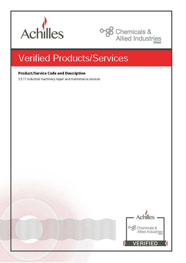 Achilles 化工行業(yè)供應(yīng)商認(rèn)證證書